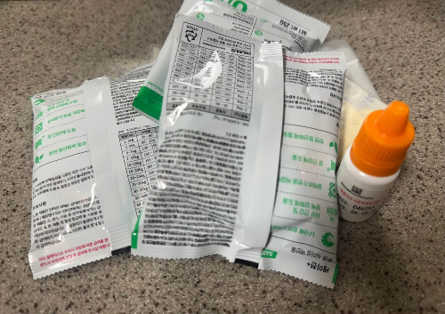 그저께 산책 후 씻고 몸에 뿌려준 미스트가 눈에 들어갔는지, 아니면 눈물 때문에 바른 파우더 때문인지, 요 며칠 얼굴을 자꾸 비벼서 간식이나 사료 때문에 생긴 피부 알레르기인지... 일주일 동안 안약과 항생제를 먹이며 상태를 보자고 하셨어요.