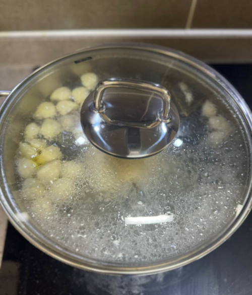 살짝 데친 닭고기를 양파, 파, 마늘을 넣고 푹 끓입니다. 중간에 떠오르는 거품은 제거해 주세요.
