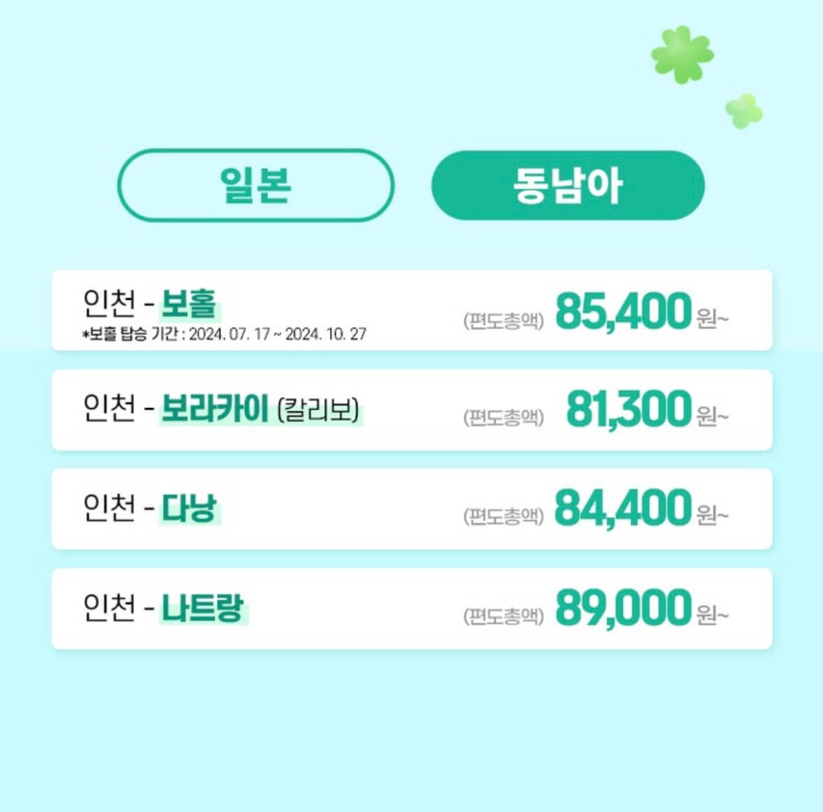 ● 동남아 14,900 ~ : 다낭/나트랑/보라카이/보홀