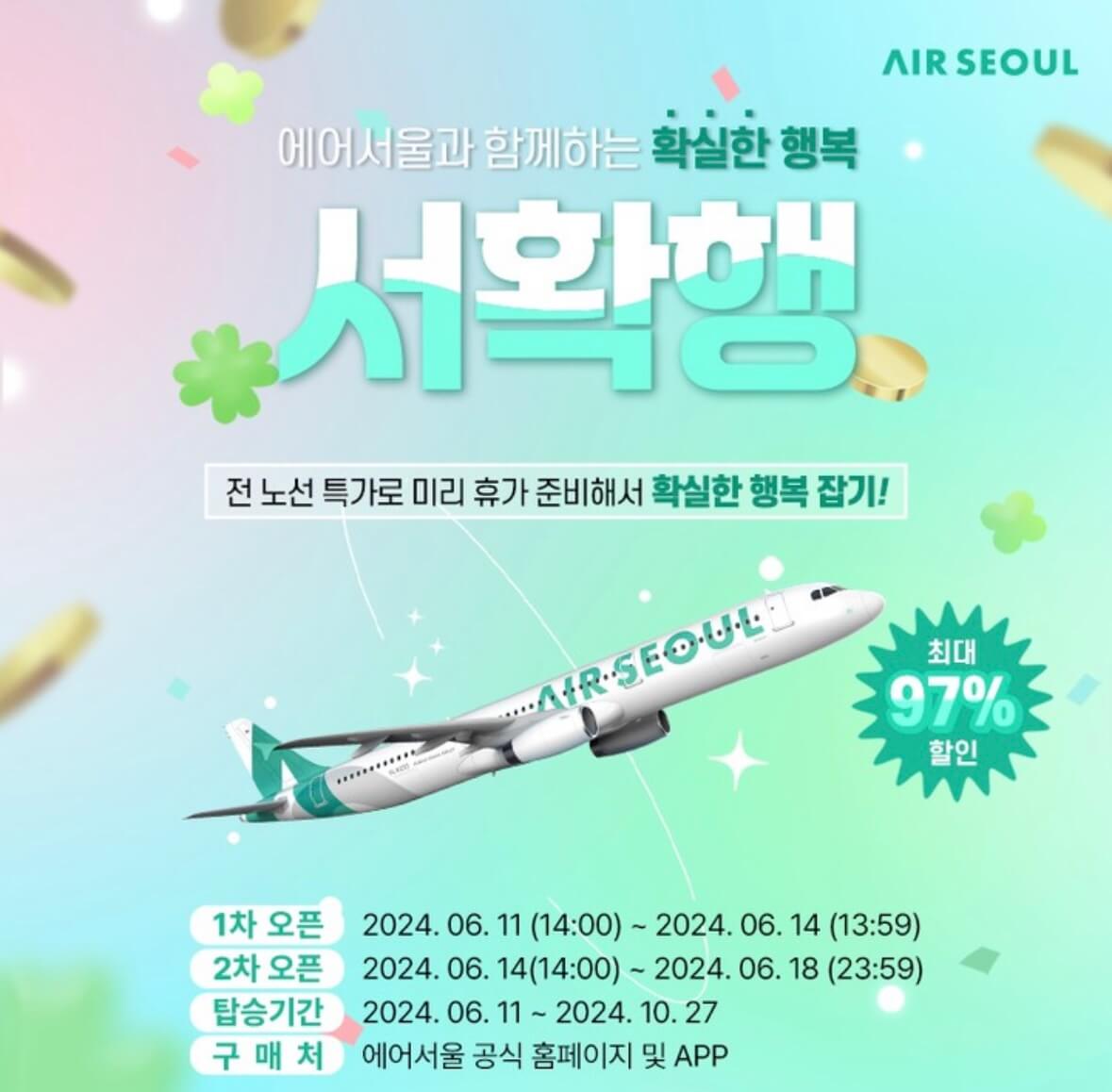 에어서울이 국제선 전 노선을 최대 97% 할인,