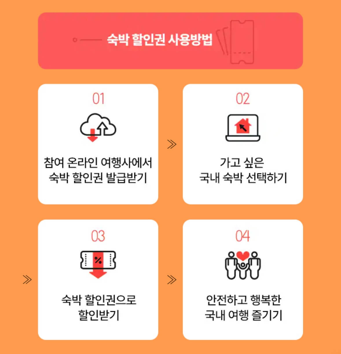 단, 준비된 수량이 모두 소진되면 종료되니 서둘러야겠죠? 발급받은 할인권은 다음 달 9일부터 10월 13일까지 사용할 수 있으며 서울, 경기, 인천을 제외한 비수도권 지역의 숙박상품에 적용할 수 있어요.