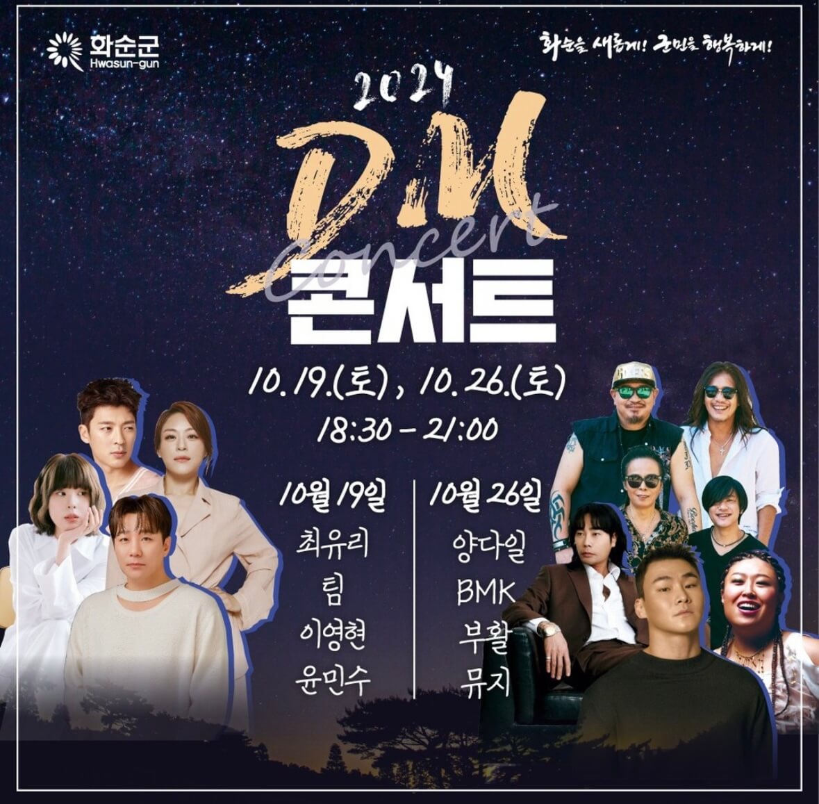 - DM콘서트: 10월 26일과 11월 2일에는 인기 대중가수들의 공연이 진행되어 축제의 열기를 한층 더합니다.